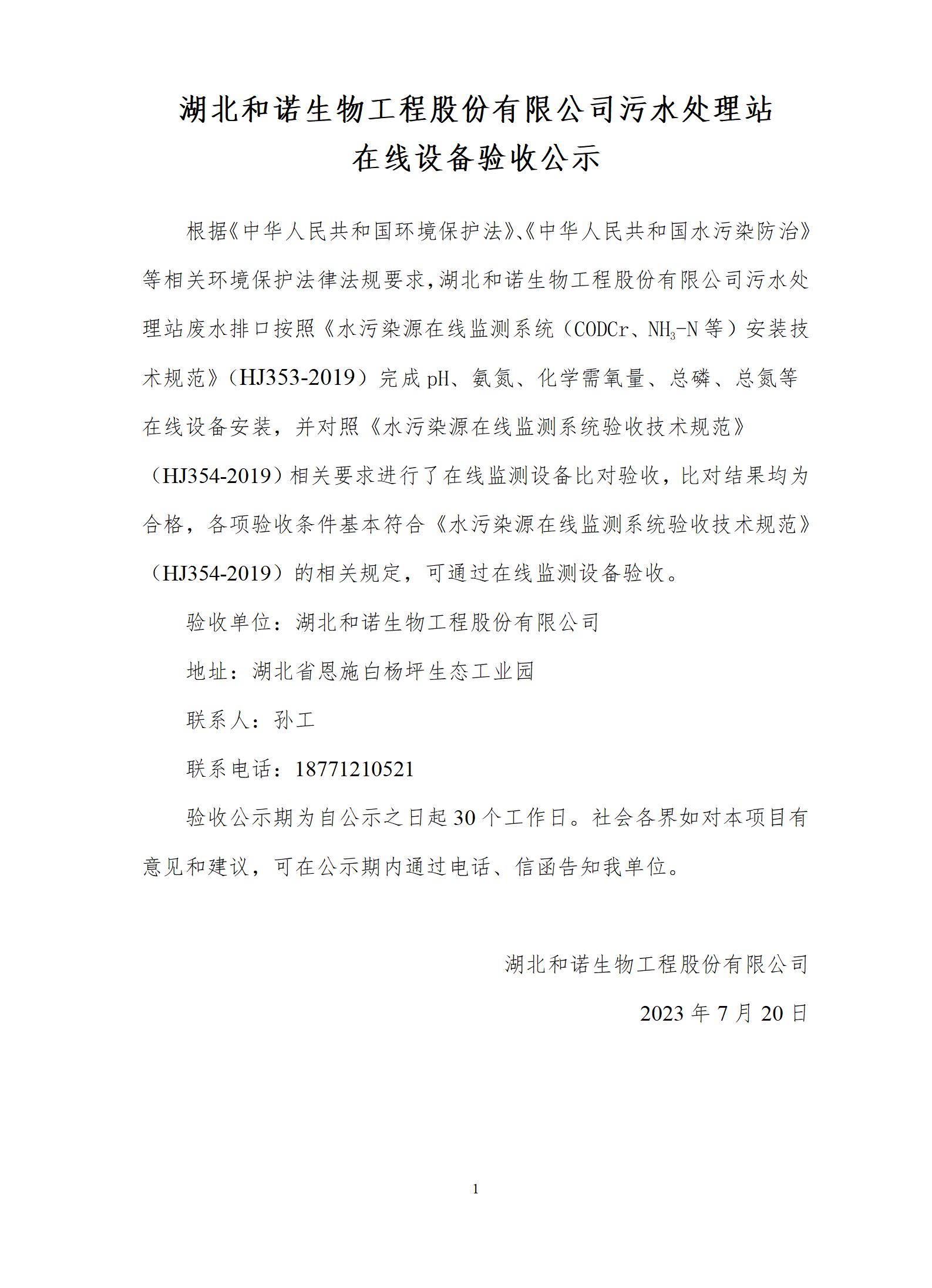 湖北和諾生物工程股份有限公司污水處理站在線設(shè)備驗(yàn)收.pdf